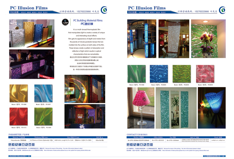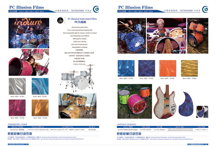 PC幻彩膜在樂器、建材、燈飾等行業(yè)應用